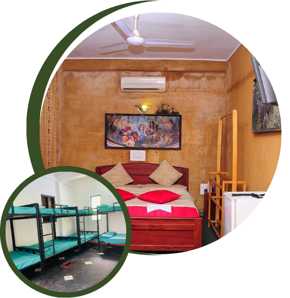 Superior Double Rooms (AC) and Dormitory-Style Group Rooms to accommodate groups of 16 max.